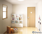 内装ドアは、お部屋の印象を決める重要なアイテムです。今回、35種類の豊富なデザインから選ぶことができます。ドア表面とミッキーマウスシルエットの採光窓が段差がなく一体化しているので、部屋の雰囲気を壊さない落ち着いたデザインに仕上がっています。